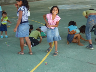 I try to use the least amount of Spanish as possible in my classes. This is difficult because many of them know very, very little English. So there is lots of acting, lots of funny faces, lots of making myself look like an idiot. But it works.